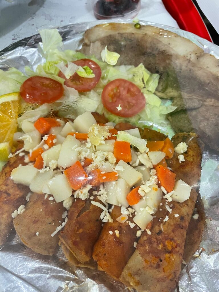 Enmoladas, enchiladas suizas, enchiladas en tres salsas, acompañas de aguas frescas de