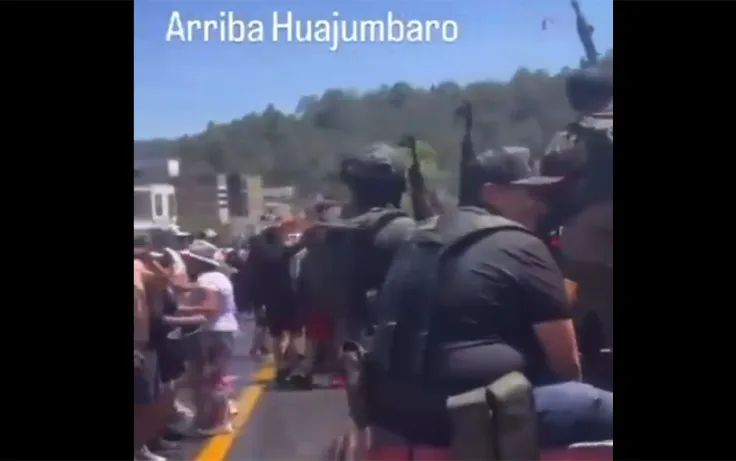 En Huajúmbaro, una localidad ubicada al noreste de Michoacán, presuntos integrantes del Cártel de Jalisco Nueva Generación (CJNG) desfilaron por el lugar, mientras pobladores los bañan con cubetas de agua, como parte de las celebraciones del Sábado de Gloria. Las autoridades estatales no han emitido una postura respecto a estos hechos.