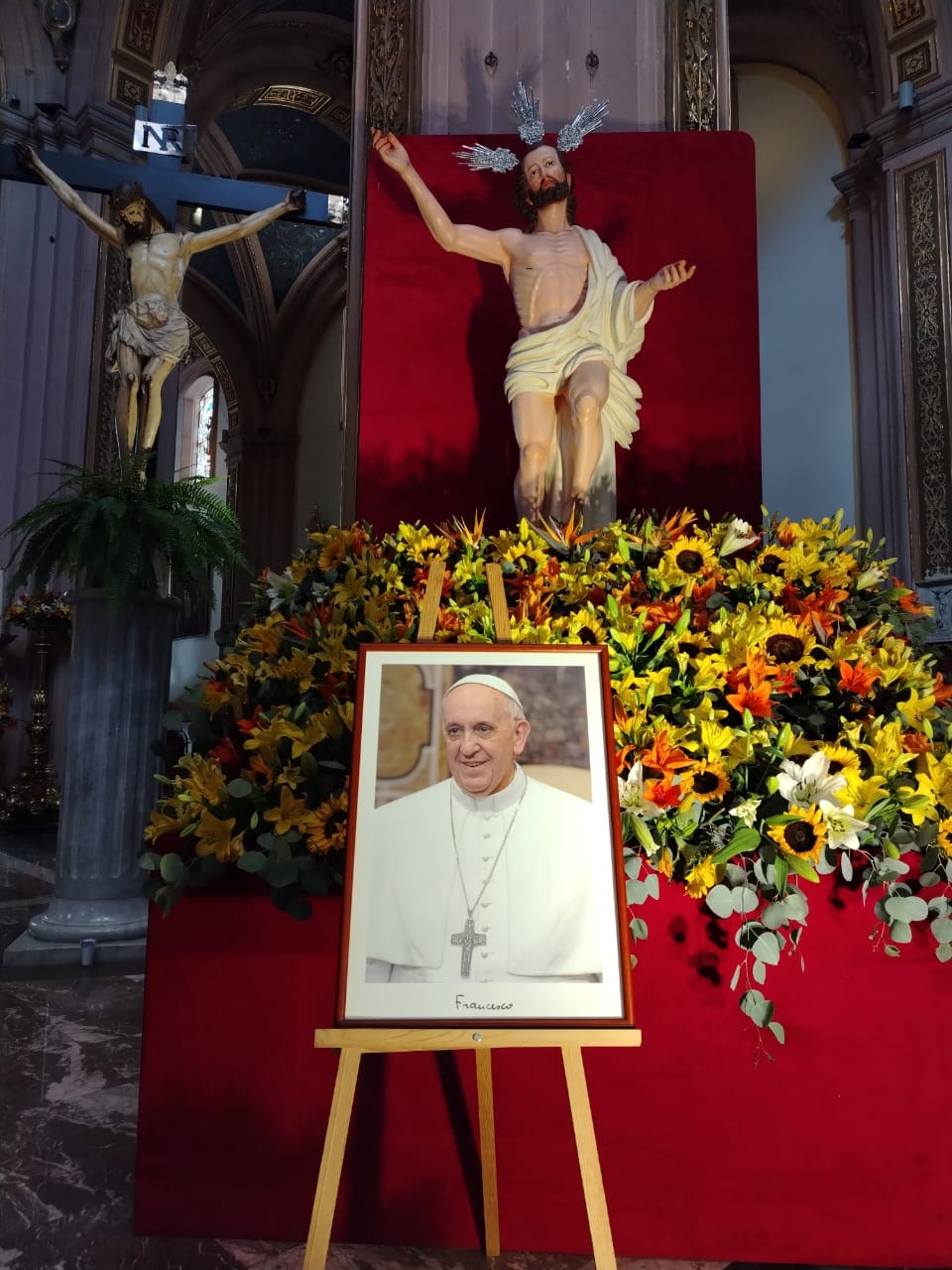 En tanto, en la Catedral Metropolitana de Nuestra Señora de la Expectación, en el altar principal fue colocada una fotografía del papa Francisco, aunque en el templo se vio a pocos fieles rezar por el papa fallecido.