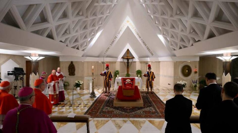 En las fotos del rito de la constatación, que iniciaron a las 20:00 horas, se observa a muchos de los cardenales presentes en Roma, que acudieron a la capilla de la Casa Santa Marta.