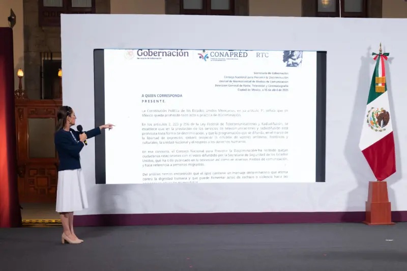 En conferencia de prensa, Sheinbaum anunció que pedirá al Congreso que restaure un artículo de la Constitución derogado en 2014 para que “ningún gobierno extranjero, ninguna entidad en ningún gobierno extranjero pueda pagar —porque el tema es que están pagando— pueda difundir estos anuncios, esta propaganda que tiene un mensaje discriminatorio, evaluado por la propia Conapred”.