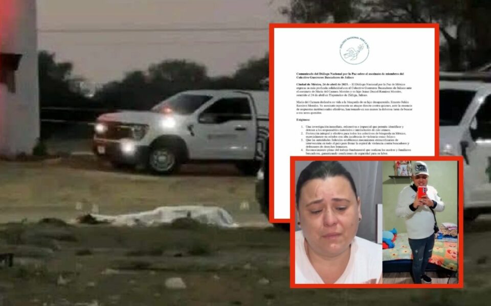 Diálogo Nacional por la Paz de México expresó su solidaridad con el Colectivo Guerreros Buscadores de Jalisco, luego del asesinato de María del Carmen Morales y su hijo Jaime Daniel Ramírez Morales, ocurrido este jueves en Tlajomulco de Zúñiga, Jalisco.