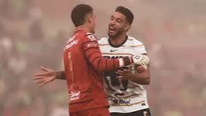 Después de 5 minutos de revisión en el VAR, el silbante central, Víctor Alfonso Cáceres Hernández, cambió el cartón amarillo del Memote por uno rojo. El elemento de Pumas tardó algunos minutos para retirarse del terreno de juego tras la expulsión.