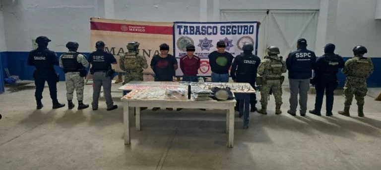 - En Paraíso, realizaron varias detenciones y aseguraron armas, drogas y equipo táctico.
