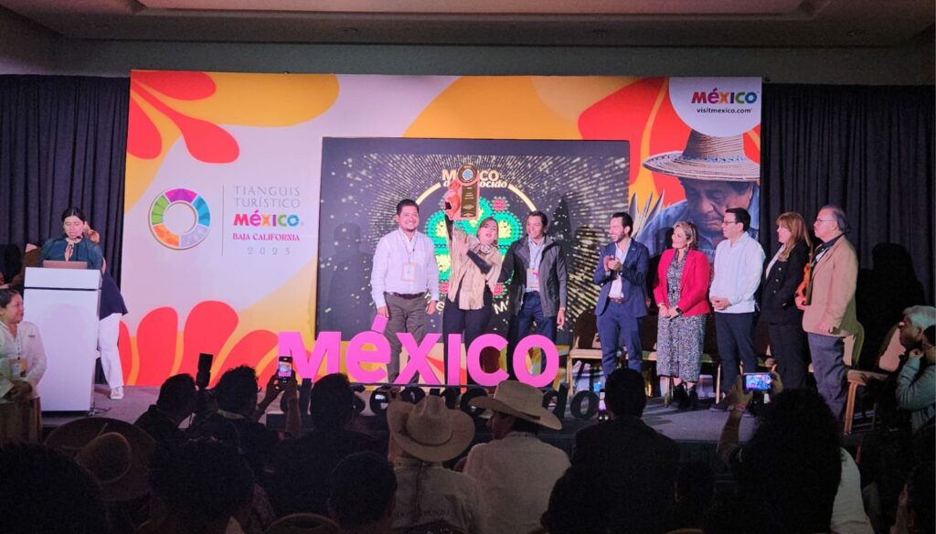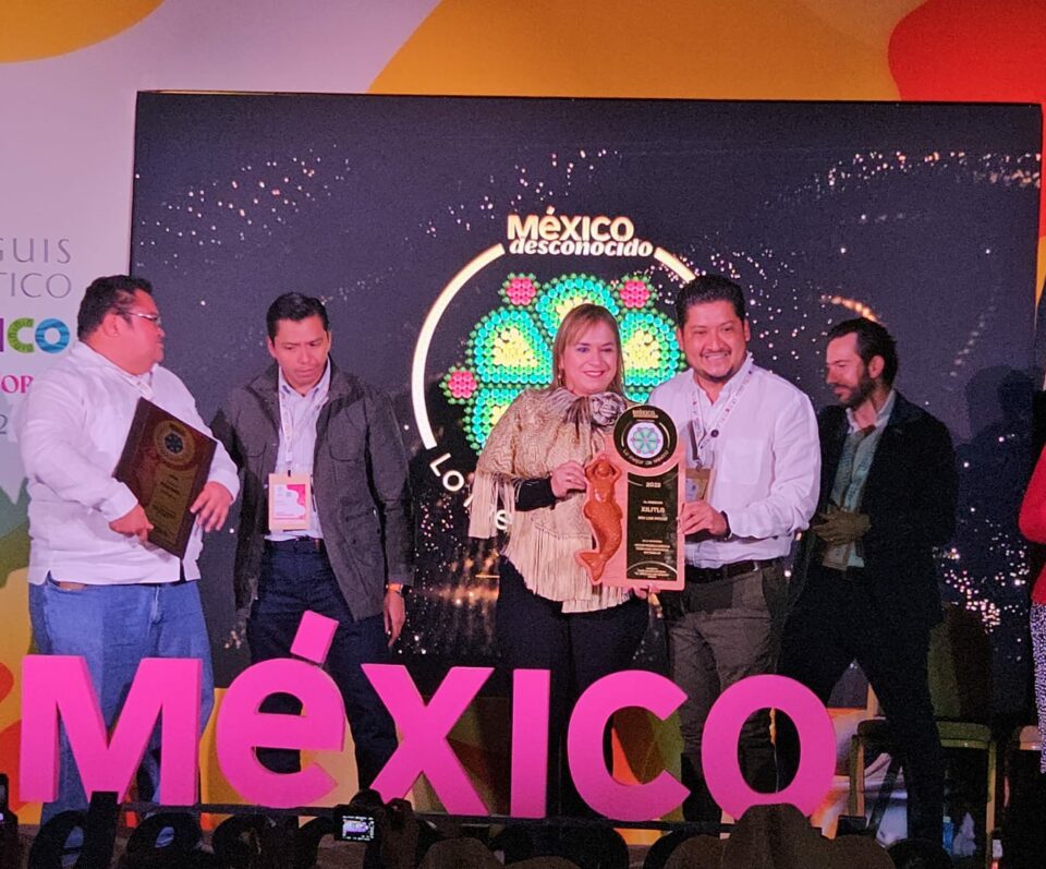 La secretaria de Turismo, Yolanda Josefina Cepeda Echavarría, y el alcalde de Xilitla, Óscar Márquez, recibieron el galardón en representación del gobernador Ricardo Gallardo Cardona.