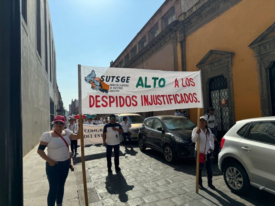 “Ellos son, ellos son, los que roban tu pensión” y “Alto a los despidos injustificados”, fueron algunos de las consignas de los trabajadores.