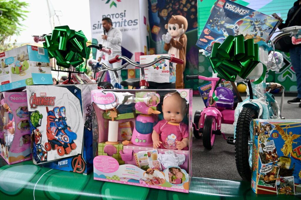 Posteriormente, en la comunidad de Santa Cruz, perteneciente a Aquismón, el Gobernador entregó a nombre del pueblo potosino bicicletas, muñecas, balones, pelotas a las niñas y niños que, en compañía de sus padres, convivieron con él en un ambiente festivo.