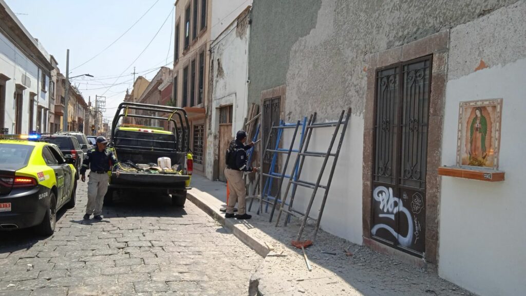 En atención a un reporte ciudadano realizado por vecinos del Centro Histórico, elementos de la Dirección de Policía Vial acudieron la mañana de este viernes a la esquina de las calles Abasolo y 5 de Mayo, donde se detectó la presencia de un andamio que obstruía el paso peatonal. Esta estructura representaba un riesgo para el libre y seguro tránsito de las personas peatonas.