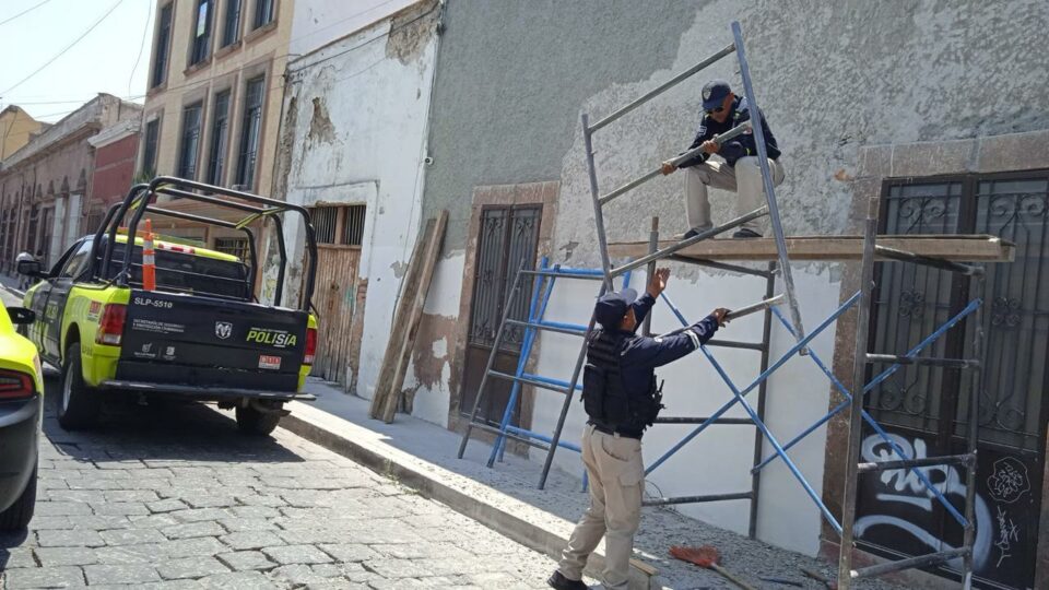 En atención a un reporte ciudadano realizado por vecinos del Centro Histórico, elementos de la Dirección de Policía Vial acudieron la mañana de este viernes a la esquina de las calles Abasolo y 5 de Mayo, donde se detectó la presencia de un andamio que obstruía el paso peatonal. Esta estructura representaba un riesgo para el libre y seguro tránsito de las personas peatonas.
