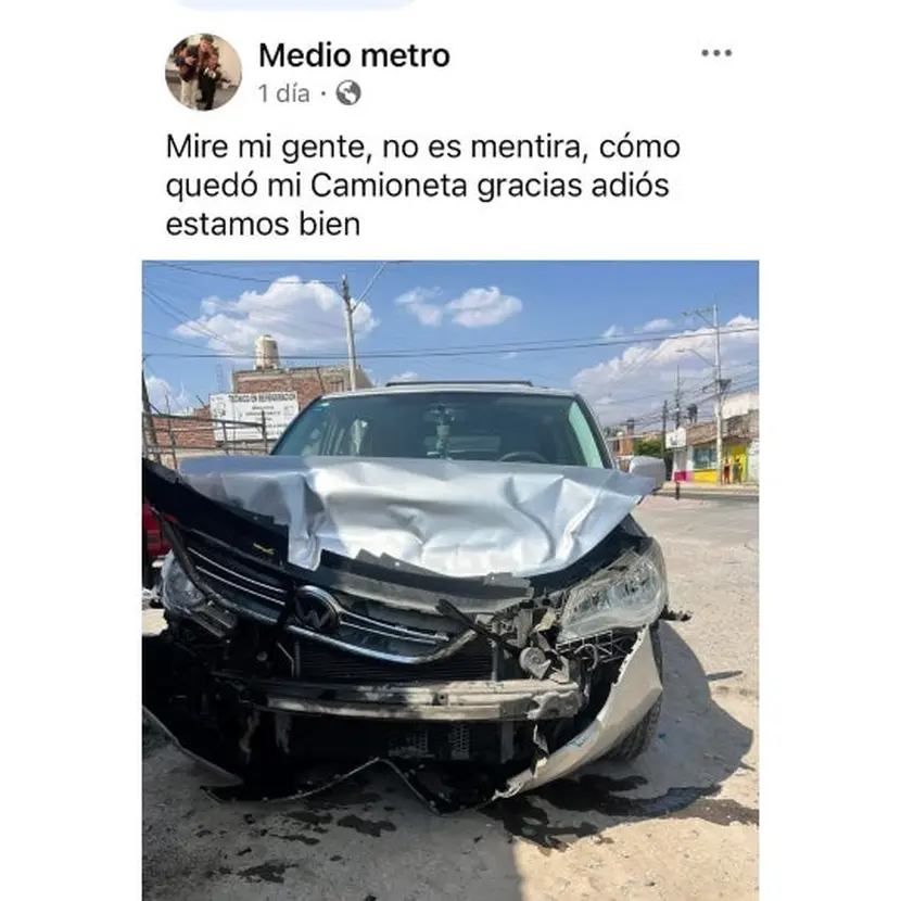 “Ahorita está en hojalatería, la están componiendo”, dijo mientras mostraba la fotografía del vehículo tras el choque.