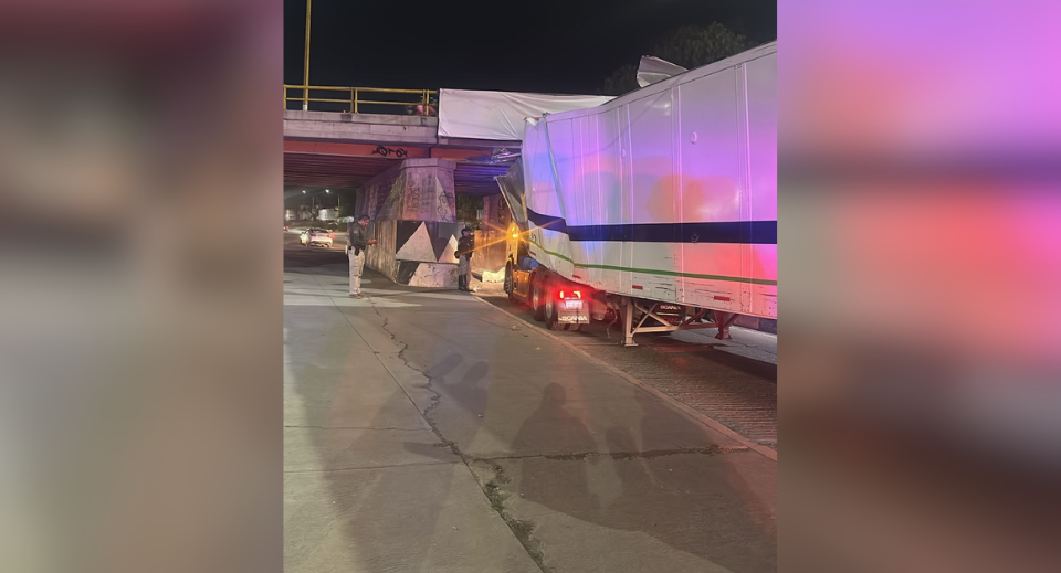 Al seguir su trayecto, la unidad ingresó al bulevar Río Santiago y quedó atorada bajo la estructura del puente de la avenida San Felipe.