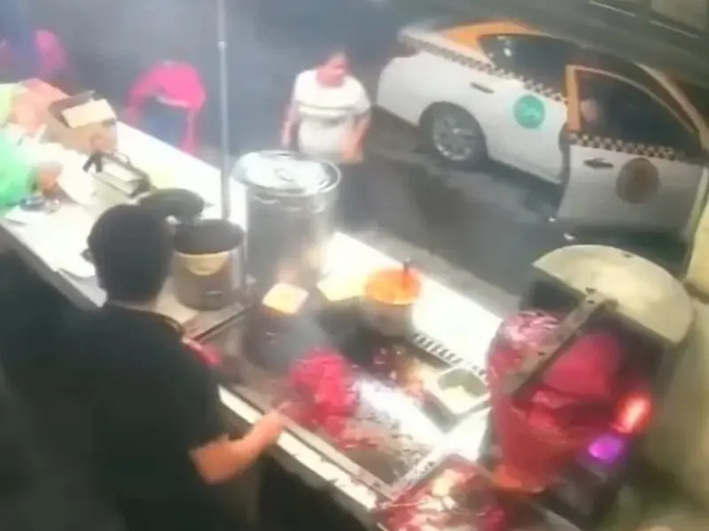 Aparentemente el auto involucrado previo a impactar a la mujer, chocó con un taxi y tras el golpe, se proyectó directamente contra el puesto de tacos conocido como “Tacos Toño”.