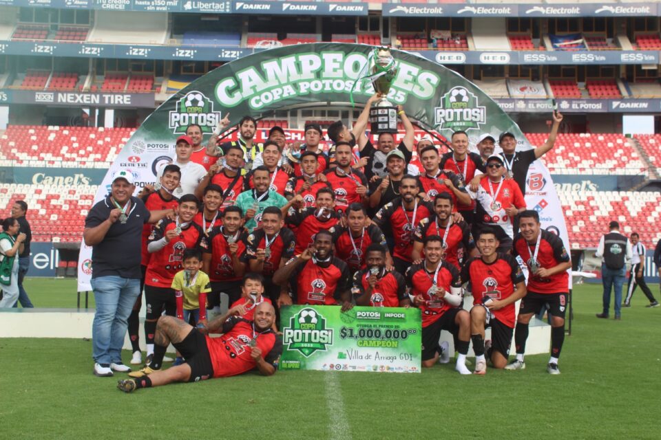 El Director del Instituto Potosino de Cultura Física y Deporte Joaquín García hizo entrega del cheque por la cantidad de un millón de pesos al equipo campeón de la Copa Potosí 2025 Villa de Arriaga GDI recibiendo la cantidad el alcalde de Villa de Arriaga y representante del equipo, Salvador López.