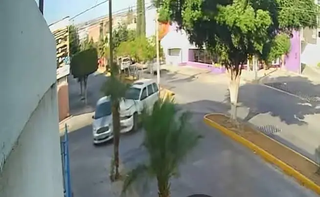De acuerdo con el testimonio, el incidente ocurrió entre las calles Scop y 18 de Marzo, cerca de la conocida pastelería “Kerubines”. La camioneta involucrada es una Jeep blanca con placas traseras UXH-401-D, la cual, tras el impacto, huyó del sitio aún con la defensa trasera colgando.