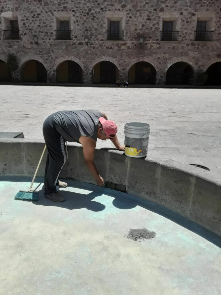 La Dirección de Servicios Municipales informó que de manera especial se reparan las fisuras que se registraban en algunas partes de la fuente, motivo por el cual fue necesario suspender temporalmente su funcionamiento.