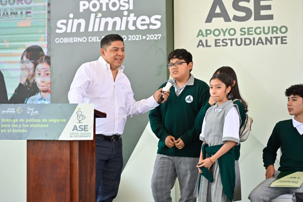 Docentes de las secundarias visitadas por el Gobernador de San Luis Potosí, Ricardo Gallardo Cardona, durante la entrega de pólizas del programa Apoyo Seguro al Estudiante, expresaron su respaldo tras los anuncios de obras significativas como la cancha de pasto sintético en la Justo A. Zamudio Vargas y la sala de cómputo, baños nuevos y equipamiento en la Dionisio Zavala.