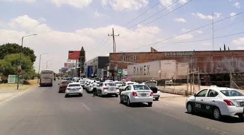 Un grupo de taxistas bloquearon el distribuidor vial Benito Juárez y la carretera 57, así como otros puntos, en protesta por el aumento del pirataje, situación que generó un fuerte congestionamiento vial en la capital potosina.