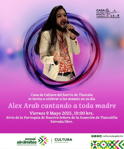 También el viernes, la Casa de Cultura del Barrio de Tlaxcala te invita a un alegre recital en honor a las madres, a cargo de Alex Arab. La cita es a las 19:00 horas en el Atrio de la Parroquia de Tlaxcalilla, con entrada libre. Es una excelente oportunidad para compartir una velada musical en un ambiente lleno de alegría.