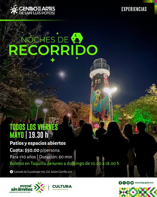Para quienes disfrutan del arte y la historia, el recorrido nocturno del Centro de las Artes de San Luis Potosí será una experiencia imperdible. Este viernes a las 19:30 horas, podrás conocer la historia y arquitectura de este emblemático recinto, que en su día fue la Penitenciaría Estatal. Los boletos tienen un costo de 50 pesos y se adquieren en la taquilla del Centro Estatal de las Artes (Ceart), una oportunidad para aprender y admirar.