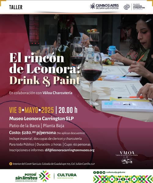 El arte también se disfruta en sabores en el museo Leonora Carrington, donde este viernes a las 20:00 horas se realiza el evento “Drink & Paint”. Con un costo de 280 pesos, podrás pintar, degustar charcutería y dos copas de clericot, en una velada que estimula todos los sentidos.