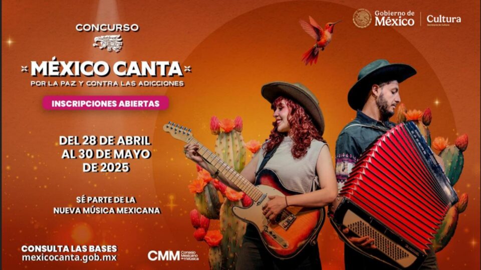 La Secretaría de Cultura informó que hasta la fecha se han registrado 5,821 jóvenes en el concurso binacional México Canta por la paz y contra las adicciones, de los cuales 4,578 inscripciones provienen de diversos estados de la república y 1,243 de comunidades mexicanas en Estados Unidos.