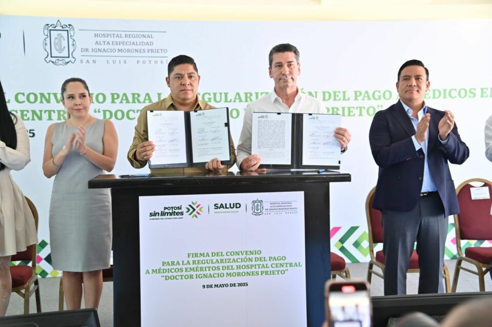 La firma de convenio con médicos jubilados del Hospital Central “Dr. Ignacio Moreno Prieto”, para formalizar el pago de su prestación mensual, dará certeza a las y los médicos que durante años cuidaron la salud de las familias potosinas.