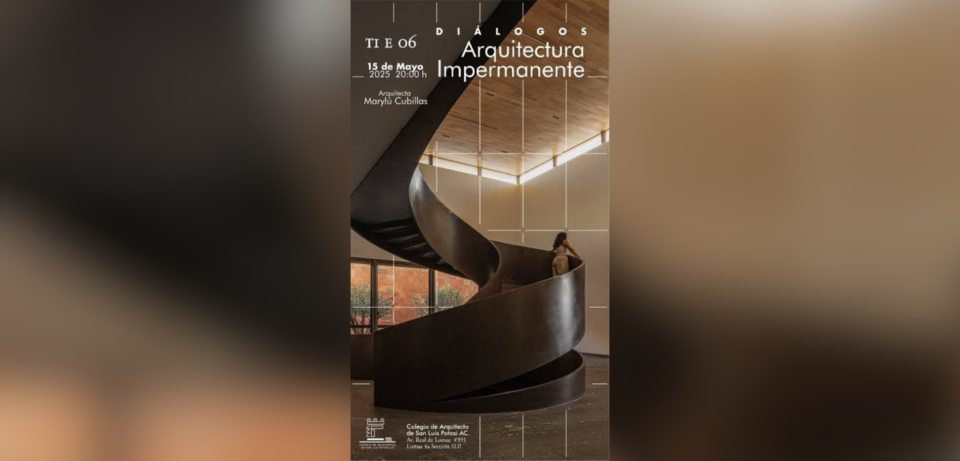 El próximo jueves 15 de mayo se realizará la conferencia Diálogos de arquitectura en el Colegio de Arquitectos de San Luis Potosí.