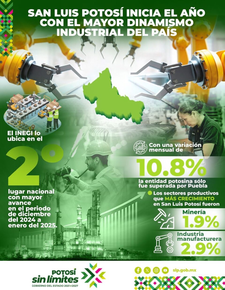 San Luis Potosí, segundo lugar nacional en crecimiento industrial en enero