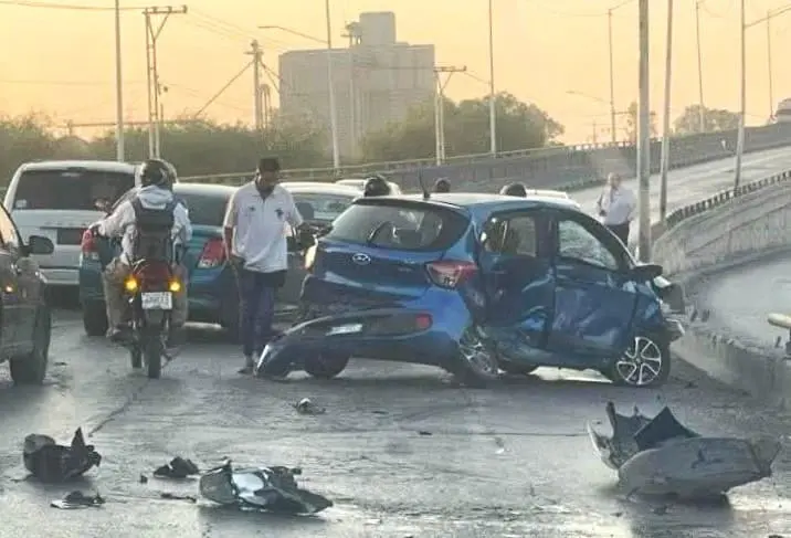 Los hechos se registraron la mañana de este martes, en la parte ascendente del puente de las vías a Tampico con dirección a la carretera Matehuala, donde se vieron involucrados un automóvil Hyundai, una camioneta Dodge y un automóvil Nissan tipo Versa.