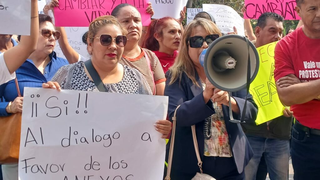 Los inconformes marcharon alrededor de Plaza de Armas y, posteriormente se colocaron frente al Edificio del Congreso del Estado, para lanzar consignas contra la diputada del PVEM, como: “Recuperación, sin discriminación”, “anexos unidos, jamás serán vencidos”, entre otras.