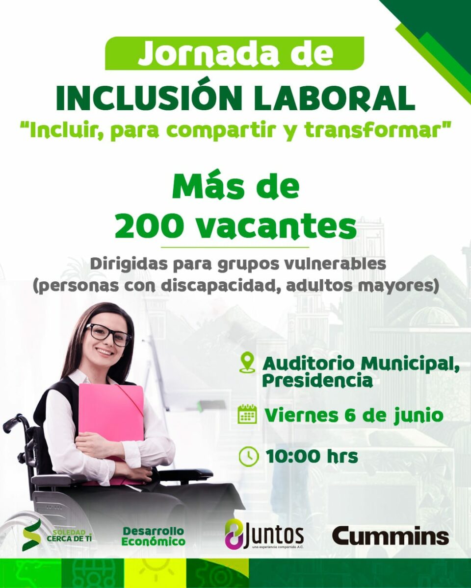 Señaló que la generación de empleo debe estar al alcance de todas y todos, especialmente de aquellos sectores que enfrentan barreras estructurales para acceder a una fuente laboral digna; por ello, esta Jornada contará con la participación de empresas de diversos rubros como la construcción, la transformación industrial y los servicios, muchas de ellas con infraestructura adaptada para personas con discapacidad motriz, auditiva, visual e intelectual, como APELSA y Grupo SuAcero.
