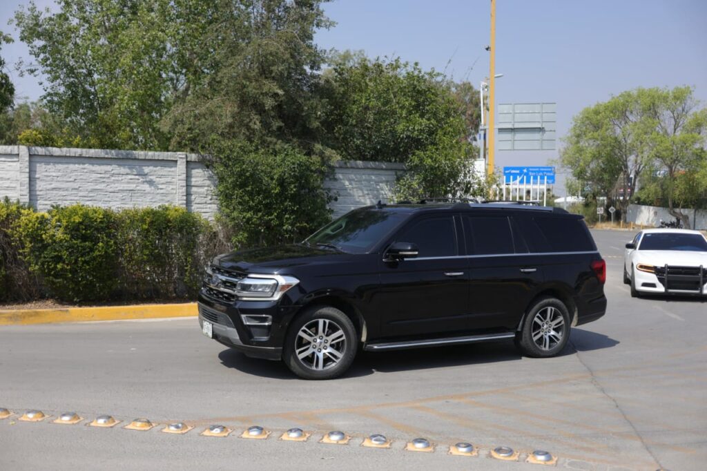 A las 10 de la mañana, fueron cerradas las puertas de aduana y del hangar por elementos de la Guardia Civil y por el Ejército Mexicano, donde la esperaba el Gobernador Ricardo Gallardo en una camioneta Ford oscura, además de la comitiva de protocolo del Gobierno del Estado. En todo momento, las puertas permanecían cerradas y había total hermetismo.