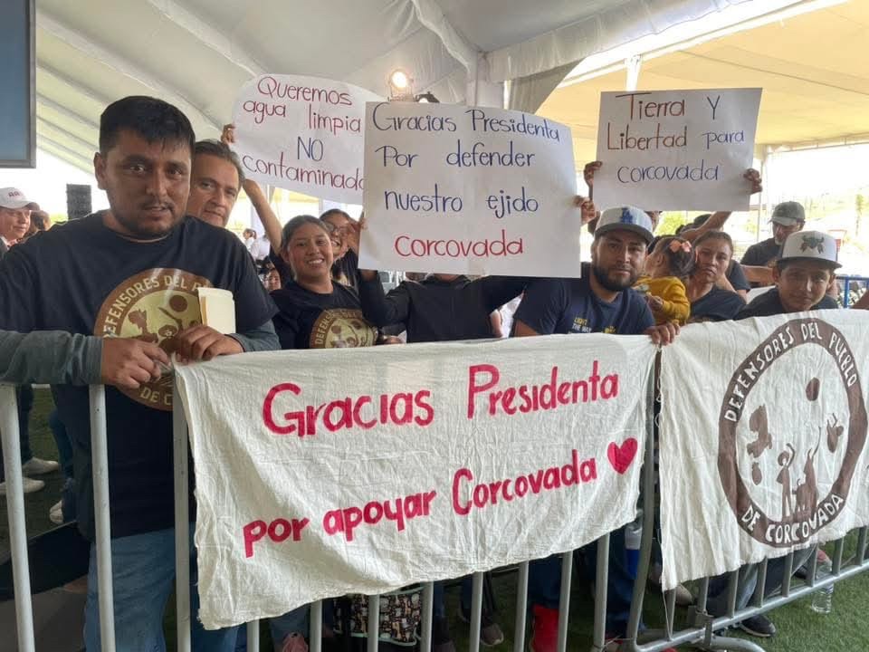 Habitantes del ejido Corcovada entregaron un escrito a la presidenta Claudia Sheinbaum en el que solicitan proteger la vida de los representantes ejidales porque dicen es grande “la dimensión de los intereses que estamos obstaculizando y combatiendo”.