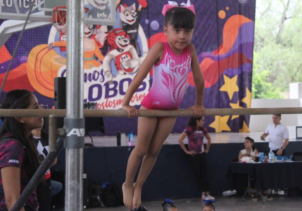 Niñas de diversas academias de esta disciplina mostraron sus habilidades y avances en cada uno de los aparatos: barras, piso, salto y viga de equilibrio.