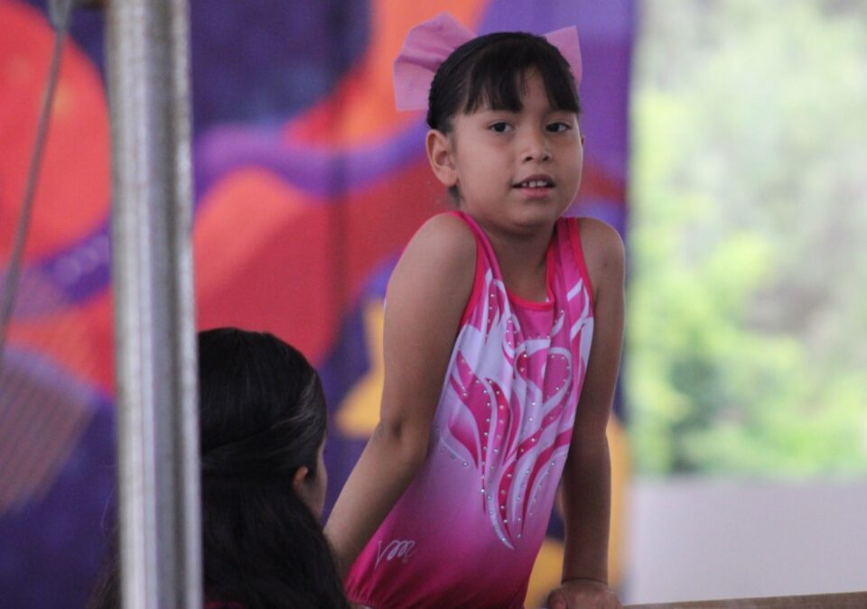 Niñas de diversas academias de esta disciplina mostraron sus habilidades y avances en cada uno de los aparatos: barras, piso, salto y viga de equilibrio.
