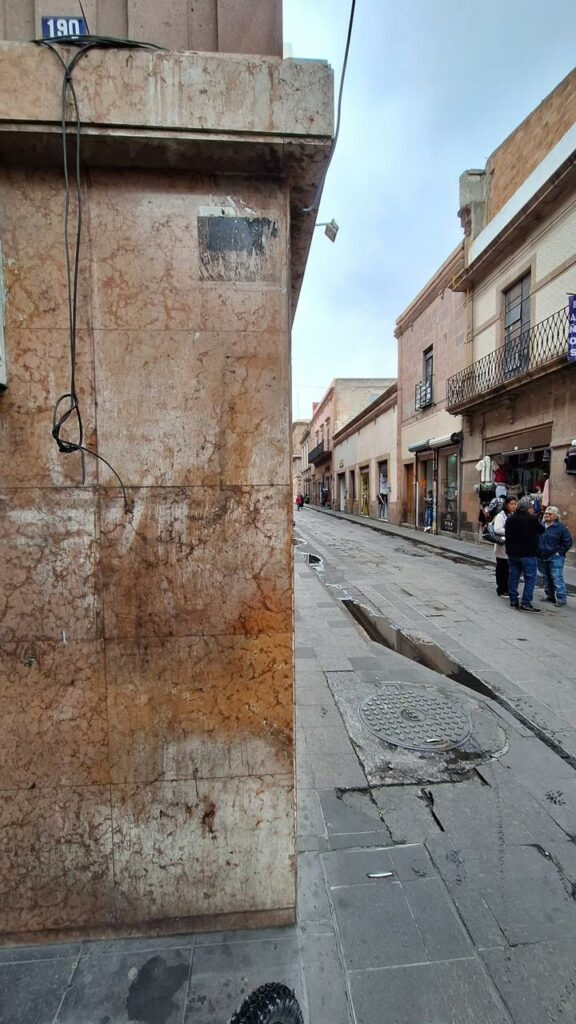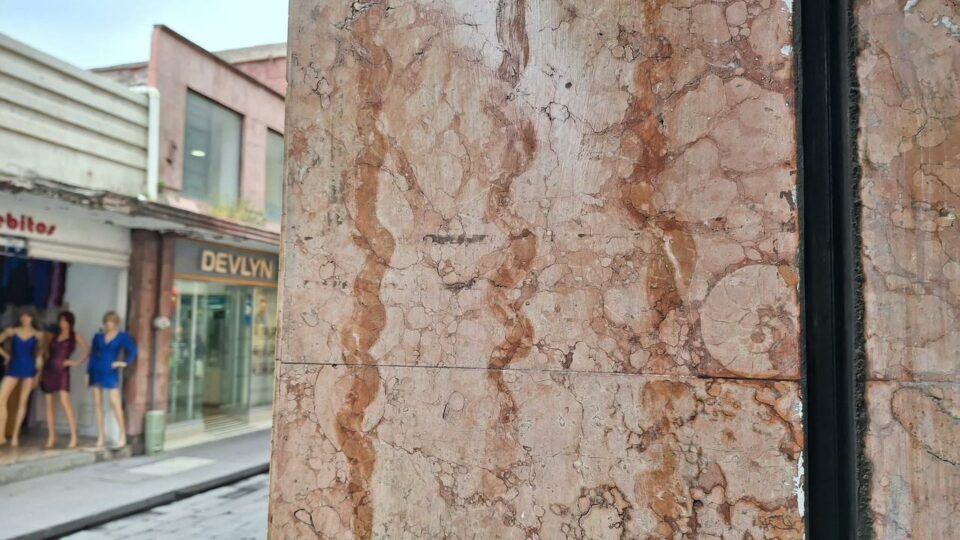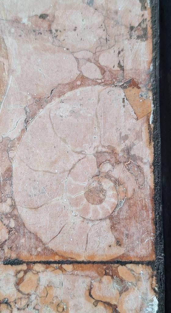 Los fósiles de amonites de hace millones de años incrustados en estas placas de mármol, son considerados todo un tesoro geológico, ubicadas en la calle José Ma. Morelos y Pavón / C. De los bravo.