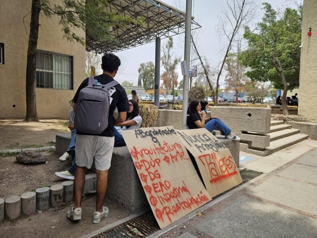 Además, otra de las pancartas señalaba: “Feliz jubilación”, donde se da por entendido que al concluir el ciclo escolar podría jubilarse dejando la Dirección a otra persona que atienda las diversas problemáticas que enfrenta la Facultad del Hábitat.