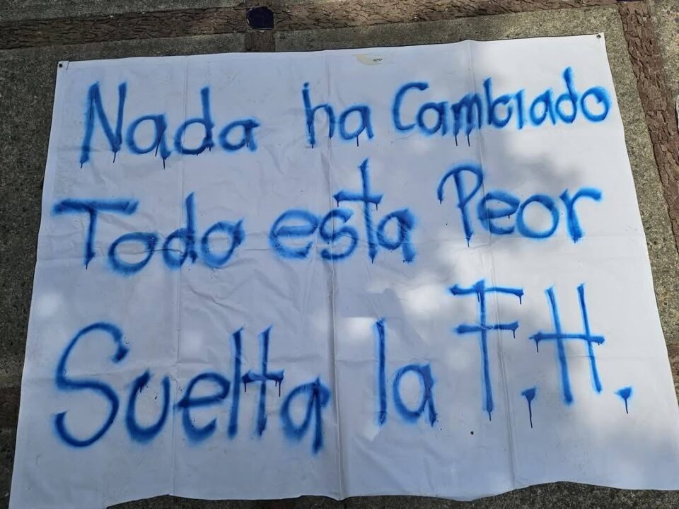 También, colocaron sobre el suelo mantas de tela con las siguientes leyendas: “Nada ha cambiado todo está peor suelta la FH”, “Segundo aviso Rosa los alumnos no te queremos”, fue hace casi un año que los estudiantes tomaron las instalaciones por varios días en protesta por su reelección como directora, se lograron a cuerdos para que continuará en el cargo, pero ahora señalan que no han cumplido con la mejora.