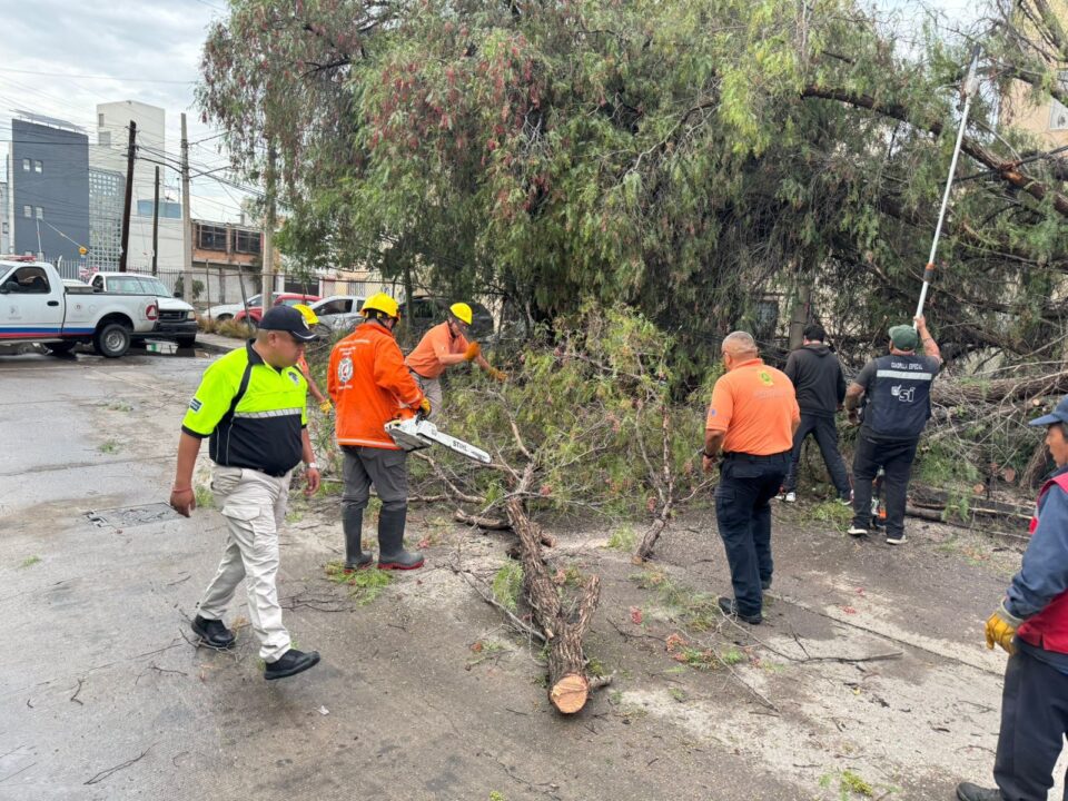 La Dirección de Servicios Municipales atendió la caída de árboles en Avenida Cuauhtémoc —frente al Instituto Potosino Marista—, así como en Mariano Jiménez esquina con Comonfort, y en Prolongación Zacatecas, en la colonia Los Reyes. Estas acciones se realizaron de manera coordinada para liberar vialidades y evitar afectaciones mayores por encharcamientos y obstrucciones.