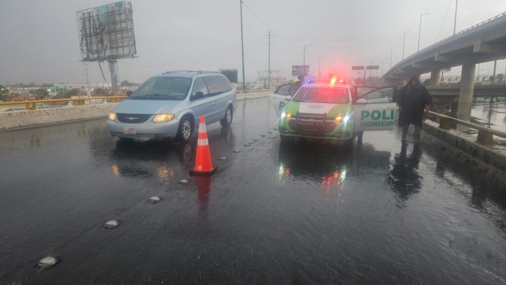 Otras se las zonas en las que oficiales de Seguridad Vial tienen presencia, debido a los encharcamientos, son calle Santander y avenida Bellavista en colonia San Lorenzo. Se pide evitar circular por las mismas.