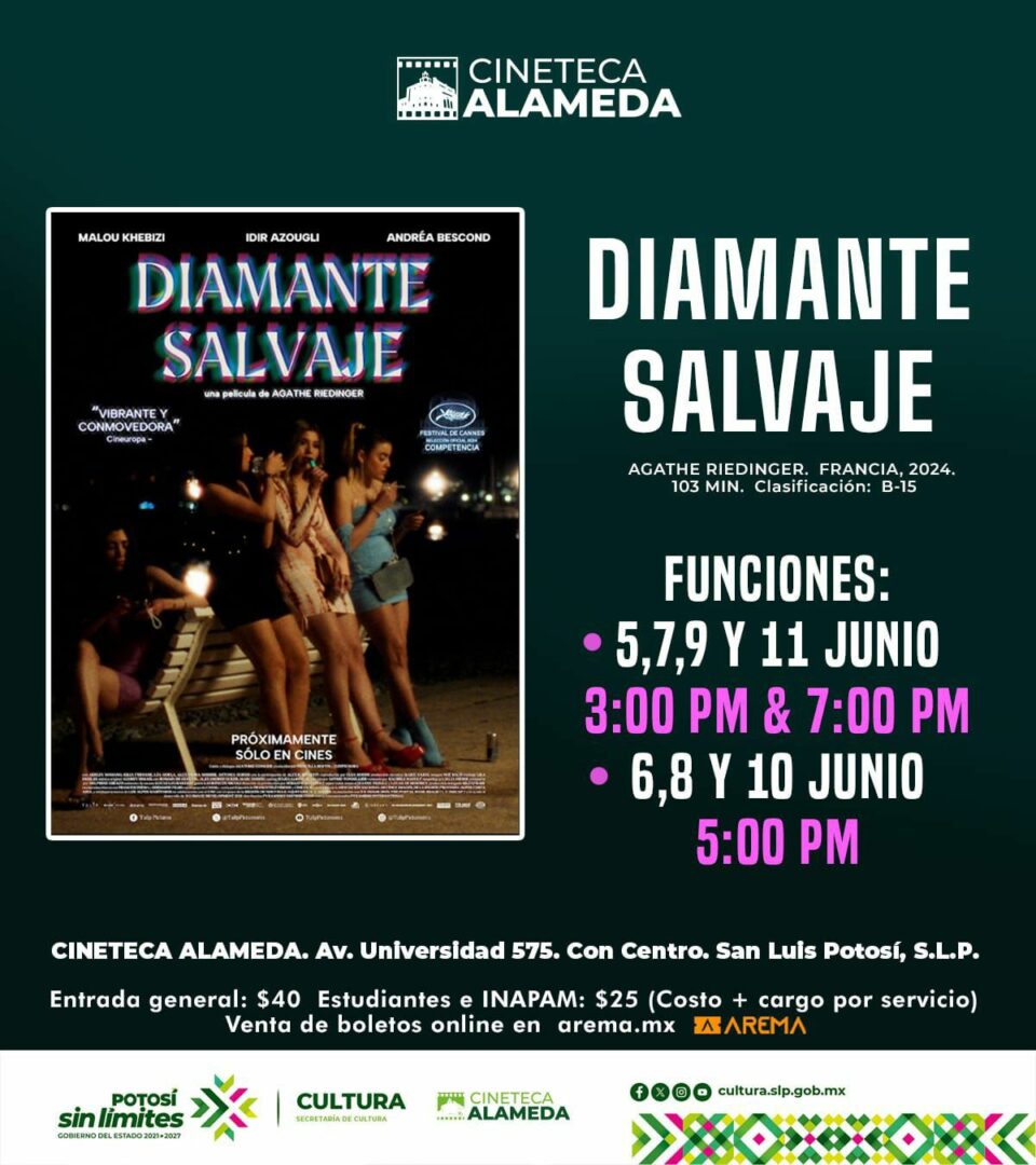 En la Cineteca Alameda se proyectará: Diamante salvaje (Diamant Brut), la ópera prima de la directora francesa Agathe Riedinger y que fue seleccionada para competir por la Palma de Oro y la Cámara de Oro, premio dedicado a la Mejor Ópera Prima, en el 77.º Festival de Cine de Cannes, donde tuvo su estreno el 15 de mayo de 2024.