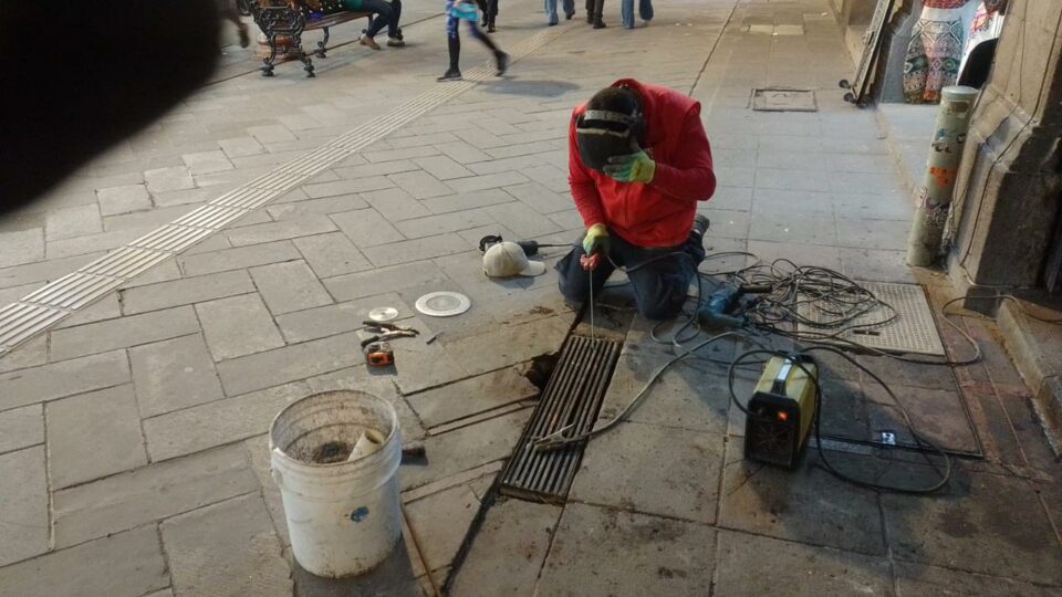 La Unidad de Gestión del Centro Histórico (UGCH), mediante su cuadrilla de respuesta inmediata, atendió de manera oportuna un reporte sobre una alcantarilla con anclaje dañado ubicada en el pasaje Zaragoza. La rejilla, que ya presentaba hundimiento, representaba un riesgo para los peatones, especialmente por las condiciones del entorno, donde el piso de cantera se encontraba manchado de grasa.