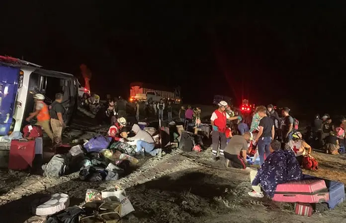 El mortal percance tuvo lugar la noche del sábado cuando el autobús de la empresa Transportes El Marqués circulaba por la mencionada carretera, procedía del estado de Guanajuato con destino a Texas, Estados Unidos, trasladando a 47 pasajeros, la mayoría originarios de Guanajuato.