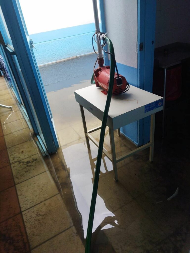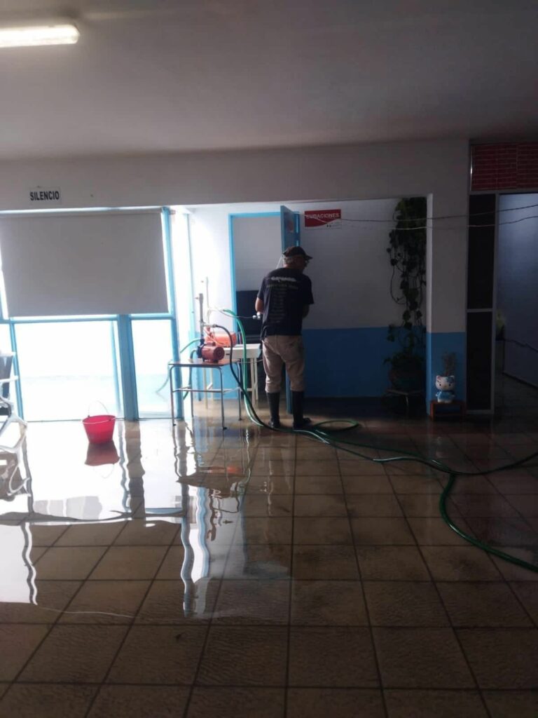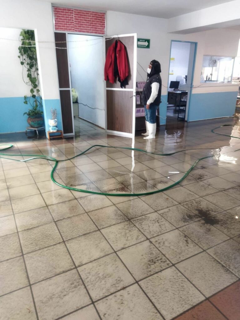 Los usuarios y pacientes de la institución, así como el personal fueron evacuados, dado que se ven las oficinas completamente encharcadas y solas para evitar incidentes.