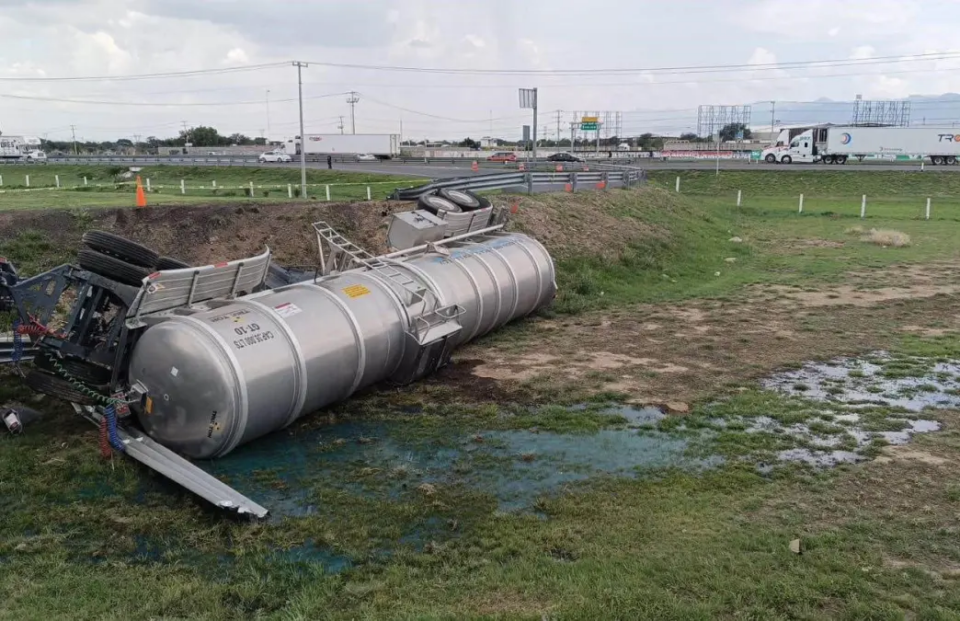 Se trata de la volcadura de tráiler que remolcaba dos cisternas, los cuales, derramaron diésel de uno por el domo.