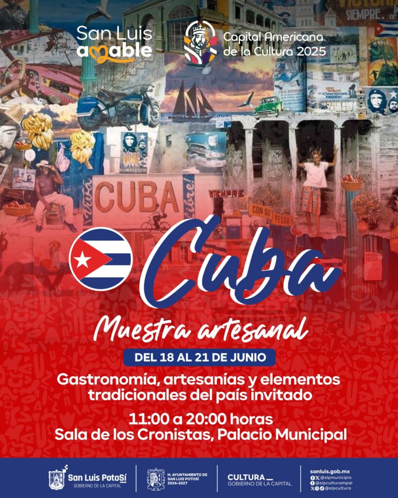 El Gobierno de la Capital arranca San Luis Potosí Capital Americana de la Cultura con la presencia del hermano país de Cuba, quienes ofrecerán una probada de Muestra Gastronómica y Artesanal, además de un interesante intercambio artístico en Plaza de Armas y dentro del Centro Cultural Palacio Municipal.