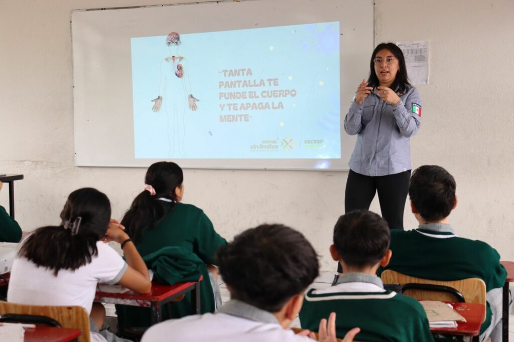 El Secretariado Ejecutivo del Consejo Estatal de Seguridad Pública (SECESP), inició talleres en escuelas del nivel básico de San Luis Potosí, para concientizar a la comunidad estudiantil sobre las consecuencias que produce un uso excesivo de celulares o tabletas en las y los niños, así como en jóvenes, promoviendo una salud mental y física.
