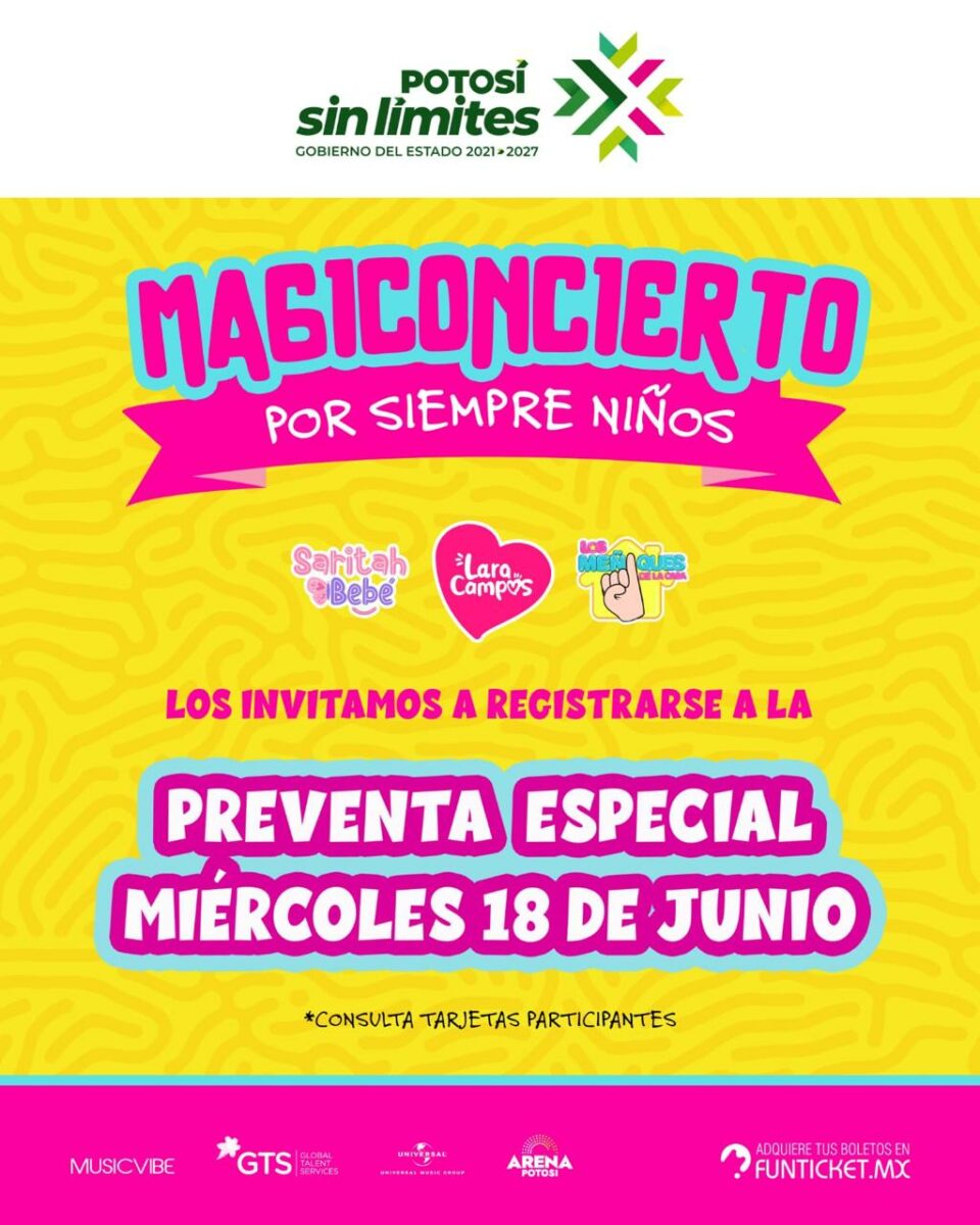 Con la magia que representa el Magiconcierto por Siempre Niños, este miércoles 18 de junio, inicia la preventa especial para adquirir los boletos para disfrutar las actuaciones de Lara Campos, Los Meñiques de la Casa y Saritah Bebé a partir de las 12:00 horas, en el link de https://arep.co/p/magiconcierto-por-siempre-nios-1
