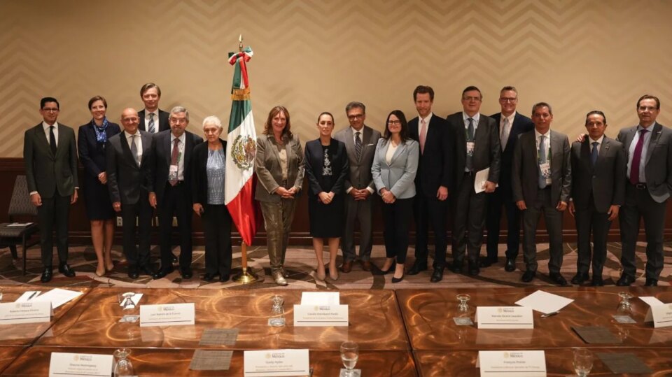La mandataria estuvo acompañada por los secretarios de Economía, Marcelo Ebrard; de Hacienda, Édgar Amador; y de Relaciones Exteriores, Juan Ramón de la Fuente, Sheinbaum explicó a los empresarios los beneficios y oportunidades que ofrece el plan, enfocado en detonar inversiones en infraestructura, transición energética y desarrollo regional.