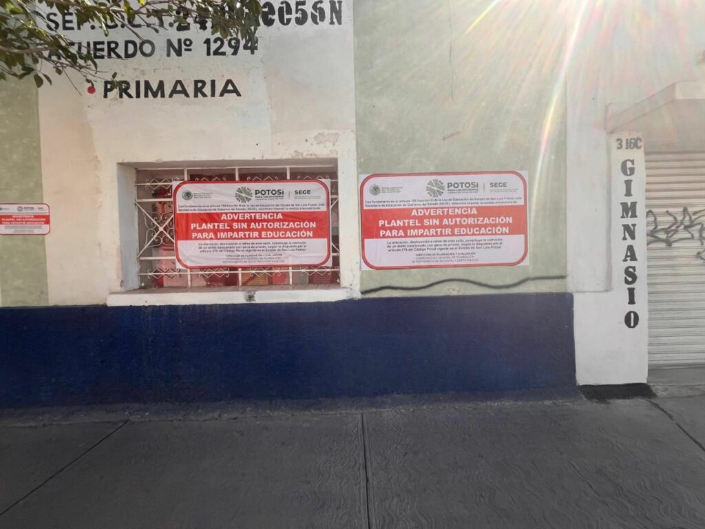 La Secretaría de Educación de Gobierno del Estado (SEGE) realizó una investigación administrativa que resultó en la colocación de sellos de advertencia en el Colegio Militarizado “Héroes de Chapultepec” en Matehuala, por ofrecer servicios educativos sin reconocimiento ni autorización estatal.